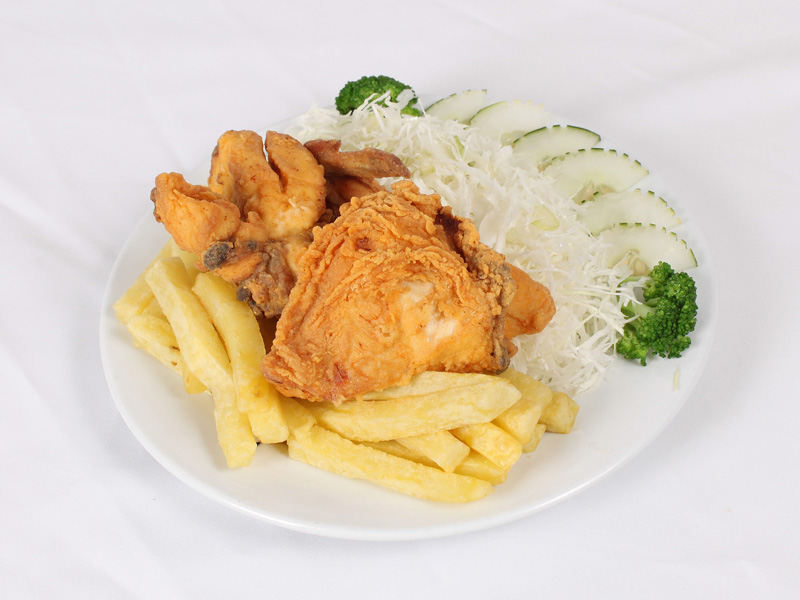Crocante pieza de pollo broaster.